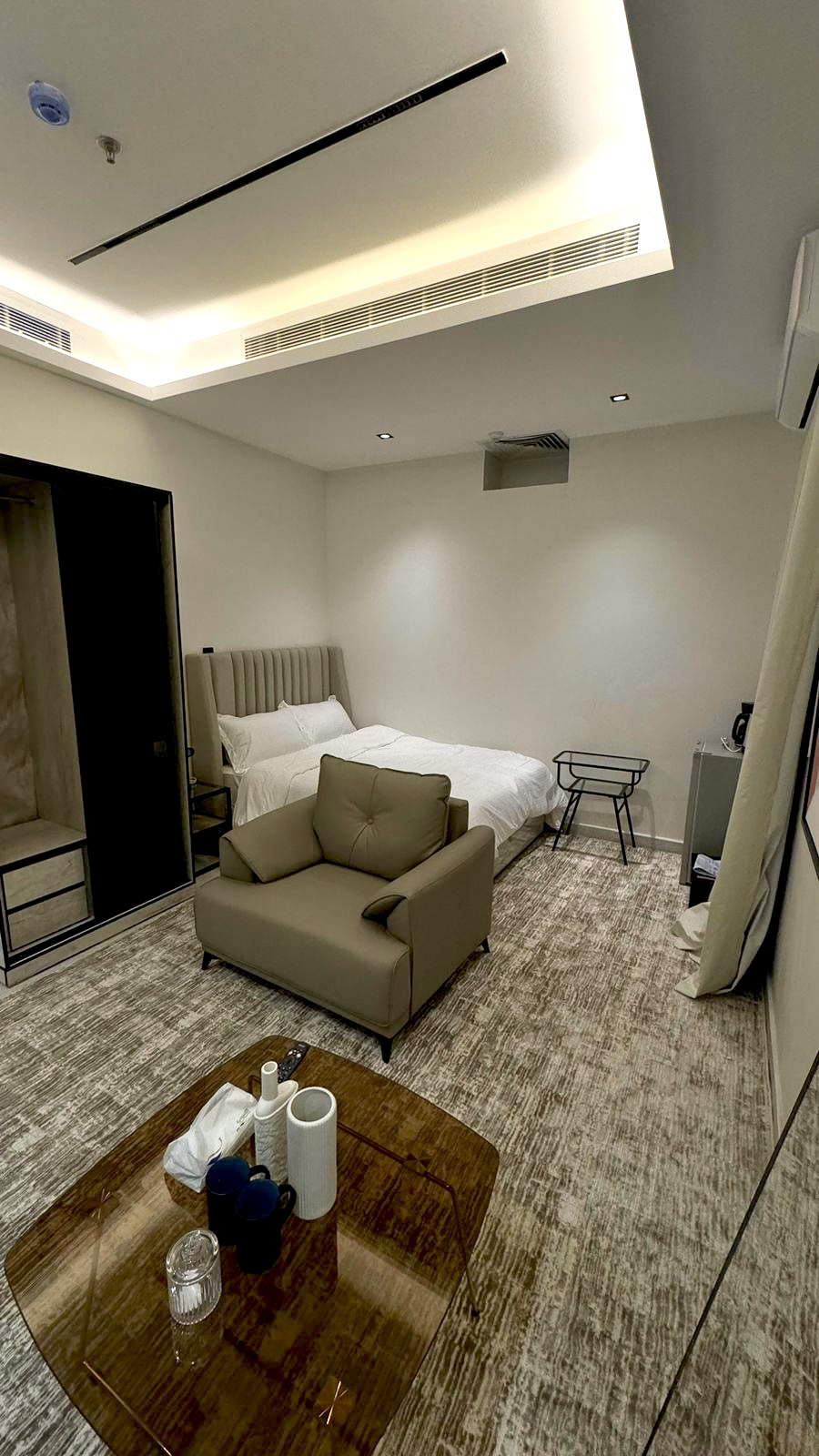المكونات الأساسية للاستوديو: باب ذكي: قفل ذكي ببصمة لتوفير أمان عالي وسهولة في الدخول والخروج. غرفة نوم مريحة: تشمل سرير فاخر بتصميم عصري يمنحك راحة قصوى ونومًا هنيئًا. دورة مياه فندقية: تصميم فاخر يحتوي على جميع المستلزمات الأساسية لتجربة مريحة. غسالة ملابس أوتوماتيكية: غسالة متطورة لتسهيل العناية بنظافة ملابسك. جلسة مريحة: تتضمن تلفزيون عصري لتستمتع بأوقات الاسترخاء والترفيه. ركن الخدمة السريع: مجهز بوسائل الراحة اليومية مثل: غلاية لتحضير المشروبات الساخنة بسرعة. آلة قهوة لتبدأ يومك بنشاط. ثلاجة لحفظ مشروباتك واحتياجاتك اليومية ببرودة وانتعاش. إنترنت مجاني: استمتع بخدمة الإنترنت المجاني لضمان راحتك وتواصلك المستمر.